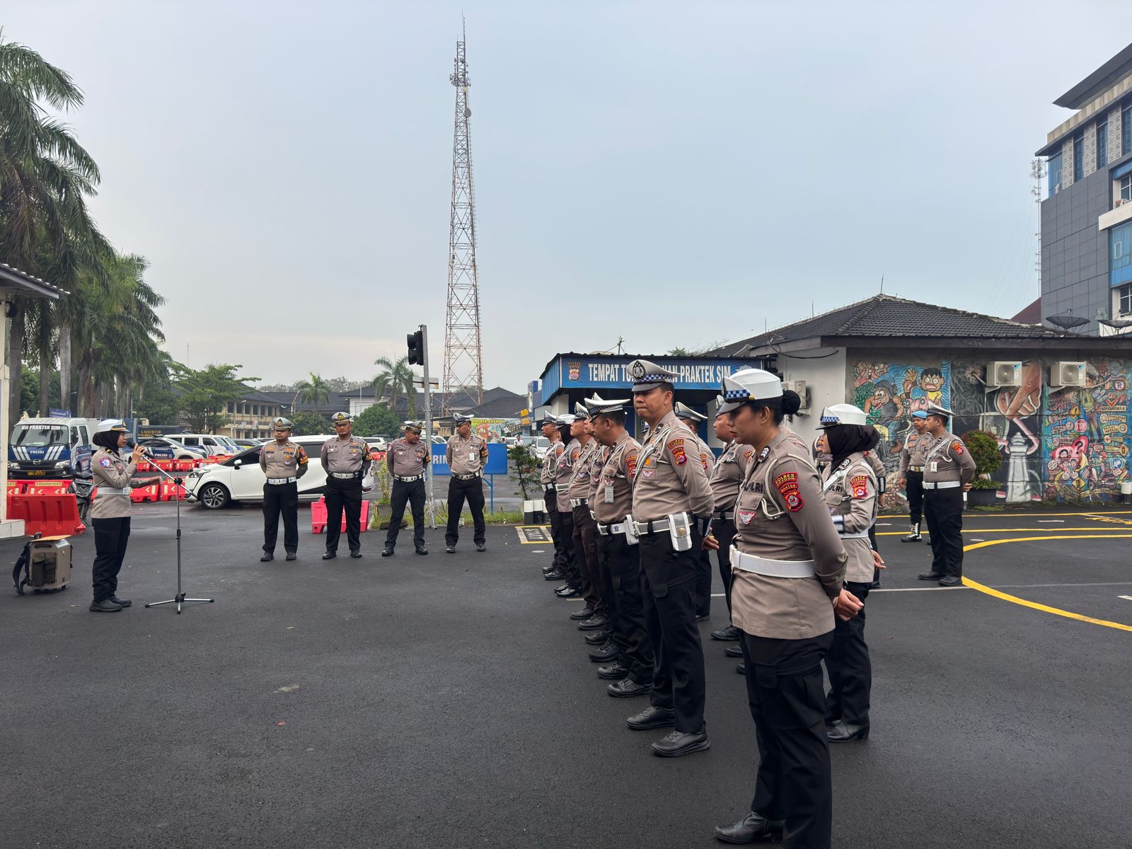 Cilegon, Satlantas Polres Cilegon Polda Banten – Kaurmintu Satlantas Polres Cilegon IPDA Dwi Chairani pimpin pelaksanaan apel Pagi yang dilakukan oleh personel Satlantas Polres Cilegon pada Pagi hari ini yang bertempat di Lapangan praktik SIM Satlantas Polres Cilegon, Rabu (21/1/2026) Pagi pukul 06.00 Wib.