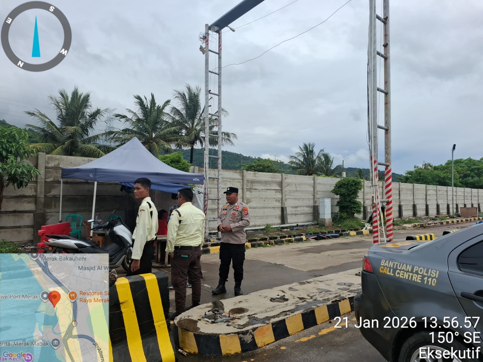 Cilegon - Personel Polsek Kskp Merak Polres Cilegon Polda Banten melaksanakan sambang dan patroli kawasan pelabuhan merak dalam rangka menjaga Harkamtibmas di Kawasan Pelabuhan Merak, Rabu (21/01/2026).