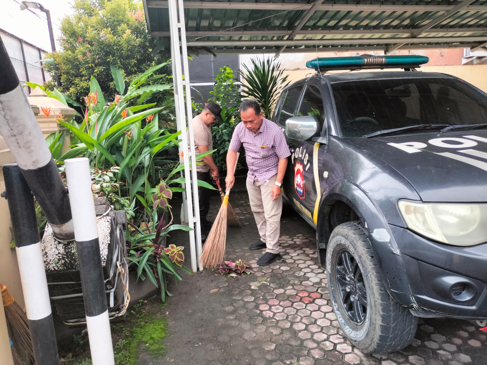 Seluruh Personil Polsek Ciwandan Bersih-bersih Dan Kerja Bakti Mako Polsek Ciwandan.