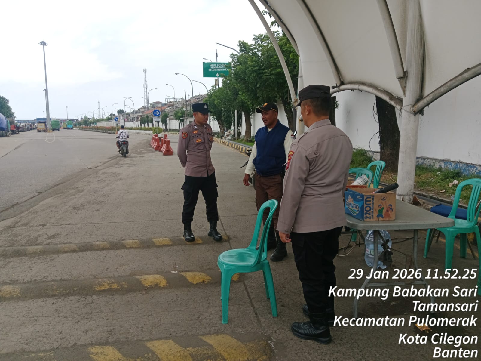 Cilegon - Personel Polsek Kskp Merak Polres Cilegon Polda Banten melaksanakan sambang dan patroli kawasan pelabuhan merak dalam rangka menjaga Harkamtibmas di Kawasan Pelabuhan Merak, Kamis (29/01/2026).