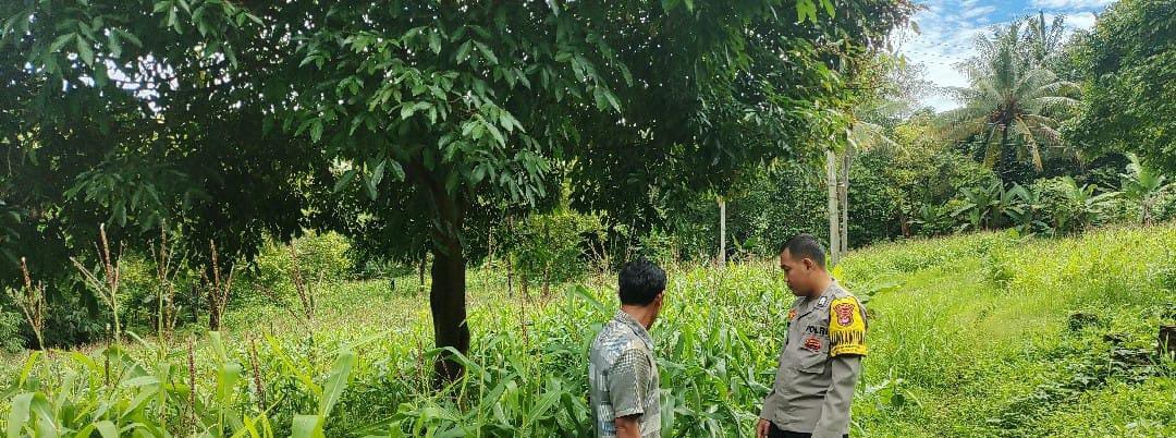 Dalam kegiatan monitoring ini, Bhabinkamtibmas meninjau langsung kondisi lahan jagung.