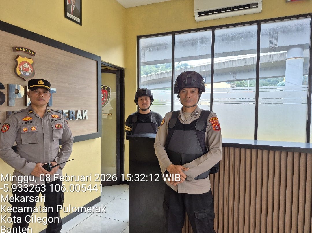 Cilegon - Personel piket jaga Polsek Kskp Merak Polres Cilgon Polda Banten melaksanakan siaga 1 Polsek pelaksanaan Sispam Mako oleh piket siaga dipimpin oleh Kspk Polsek Kskpy Merak Polres Cilegon Polda Banten, Minggu (08/02/2026).