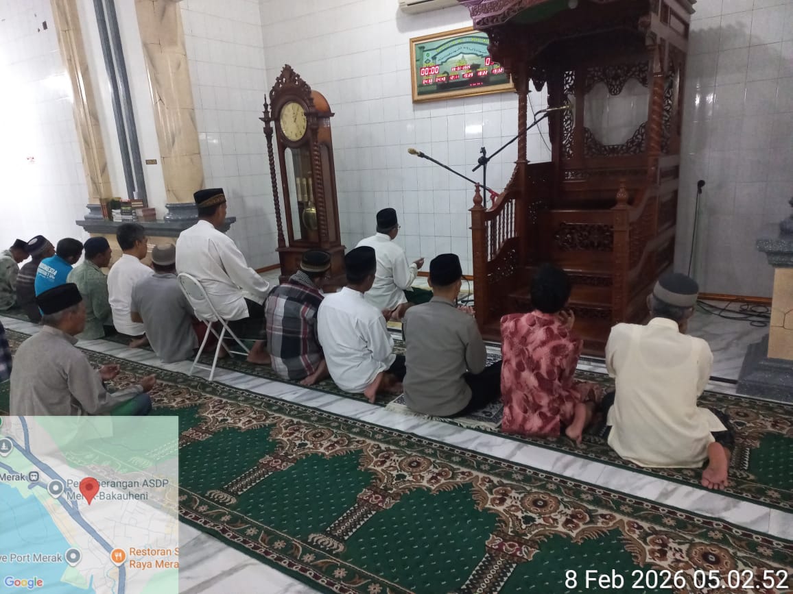 Cilegon – Personil Kskp Merak Polres Cilegon Polda Banten menggelar kegiatan Pembinaan Rohani dengan shalat subuh keliling di Masjid Yang ada Di Daerah hukum Polsek Kp Merak Polres Cilegon Polda Banten, Minggu (08/02/2026).
