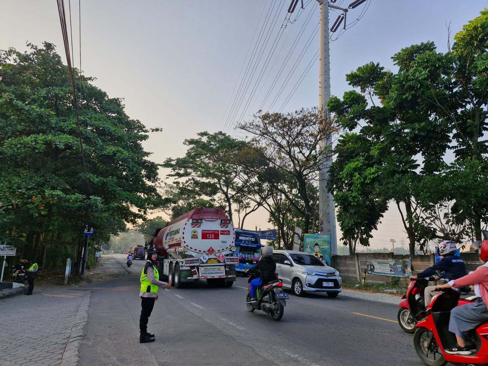Cilegon,Polres Cilegon Polda Banten Pada Rabu 10/02/2026 Pukul 06.30 Wib, Personil Siwas Polres Cilegon, Aipda Emi Prasetyo melaksanakan kegiatan pengaturan arus lalu lintas di Jalur Protokol jalan utama Kota Cilegon tepat nya di jalur depan perumahan arga baja Pura Kota Cilegon.