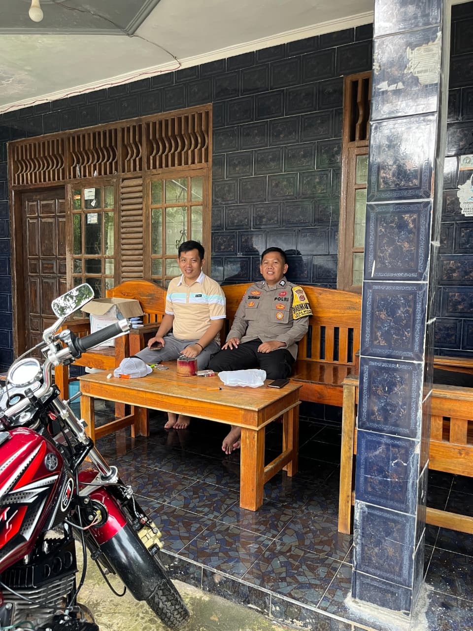 Dalam sambangnya, Bhabinkamtibmas menyampaikan pesan-pesan kamtibmas dan himbauan untuk bersama-sama menjaga kamtibmas khususnya di lingkungan masing-masing.