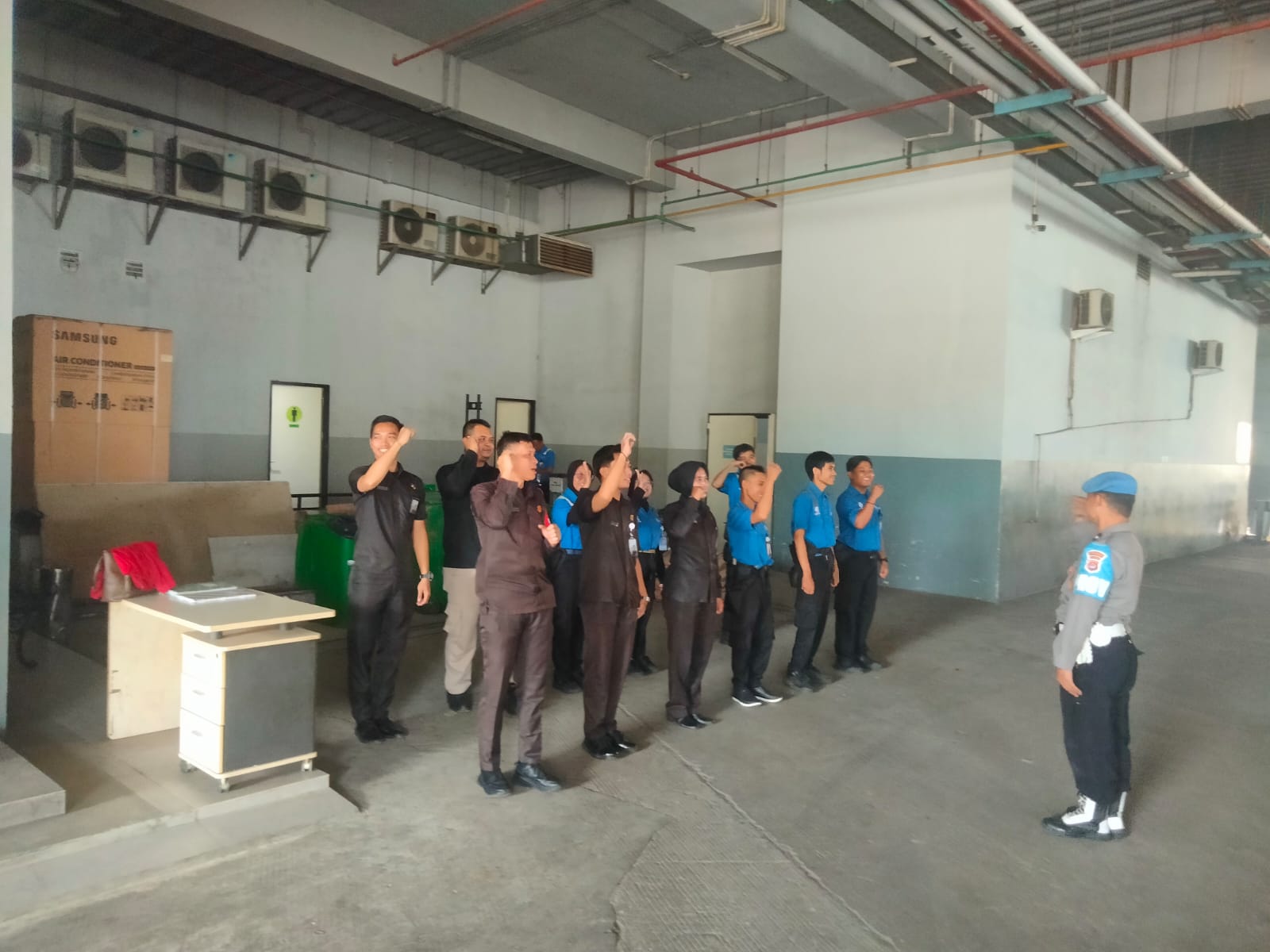 Personil Kskp Merak Polres Cilegon Sampaikan Pesan Kamtibmas Kepada Security kawasan Pelabuhan Merak.