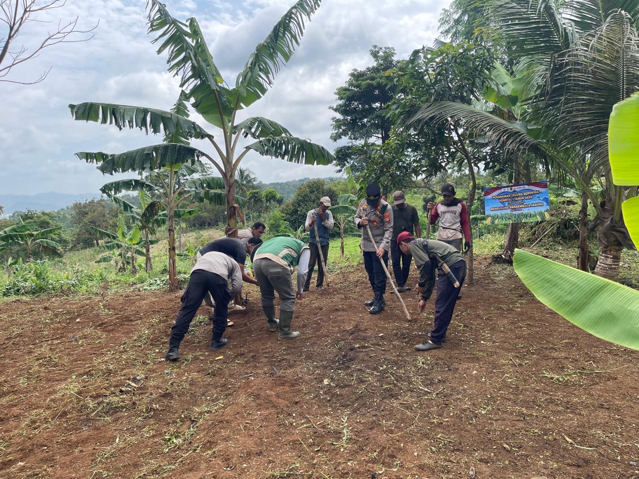 -POLRES CILEGON- Polda Banten.Mendukung program ketahanan pangan nasional, Polres Cilegon,Polsek Cinangka bersama Ketua Kelompok Tani melaksanakan penanaman jagung serentak di Desa Bantarwaru Kecamatan Cinangka Kab Serang. Sabtu (07/03/2026)